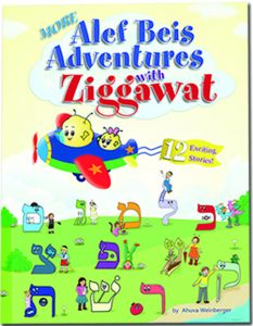Back in print! Join Ziggawat in 12 exciting stories that help teach letters Kaf-Tav, middos tovos and much more. We are excited to announce that this popular book is now back, newly revised and updated. Added features include laminated pages, teacher’s guide, reading practice pages, larger font, more illustrations and much more! 160 pages of rich education and enjoyment, designed to last – in hands and hearts!